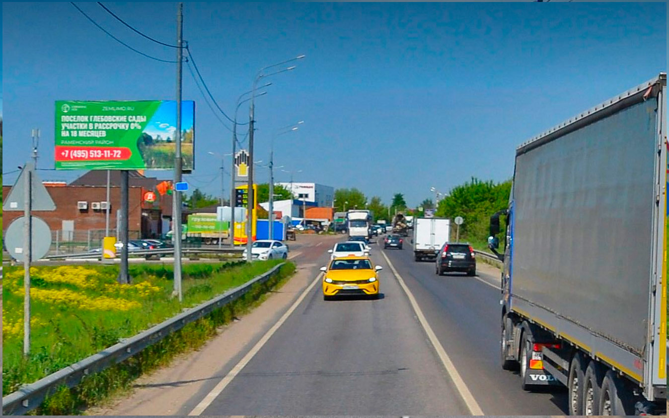 | 52/S | В | Билборд 3х6 | Раменский район, Туполевское шоссе, по направлению в г. Жуковский. 70 м от автозаправочной станции «ТНК» на противоположной стороне а/д. | фото | карта | 60 000 | свободно | свободно | свободно | 55.573167, 38.170308 |